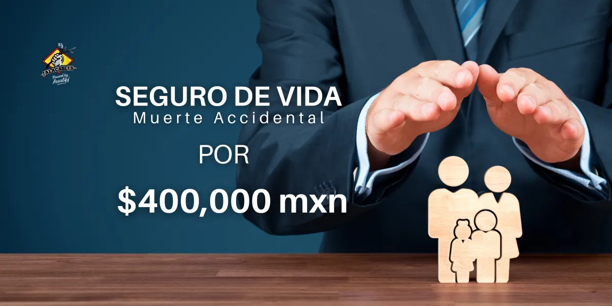 Seguro por muerte accidental hasta $400,000 MXN y gastos médicos por accidente hasta $30,000 MXN.